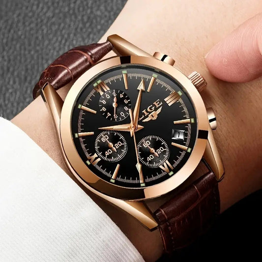 Men’s Waterproof Quartz Watch with Leather Strap