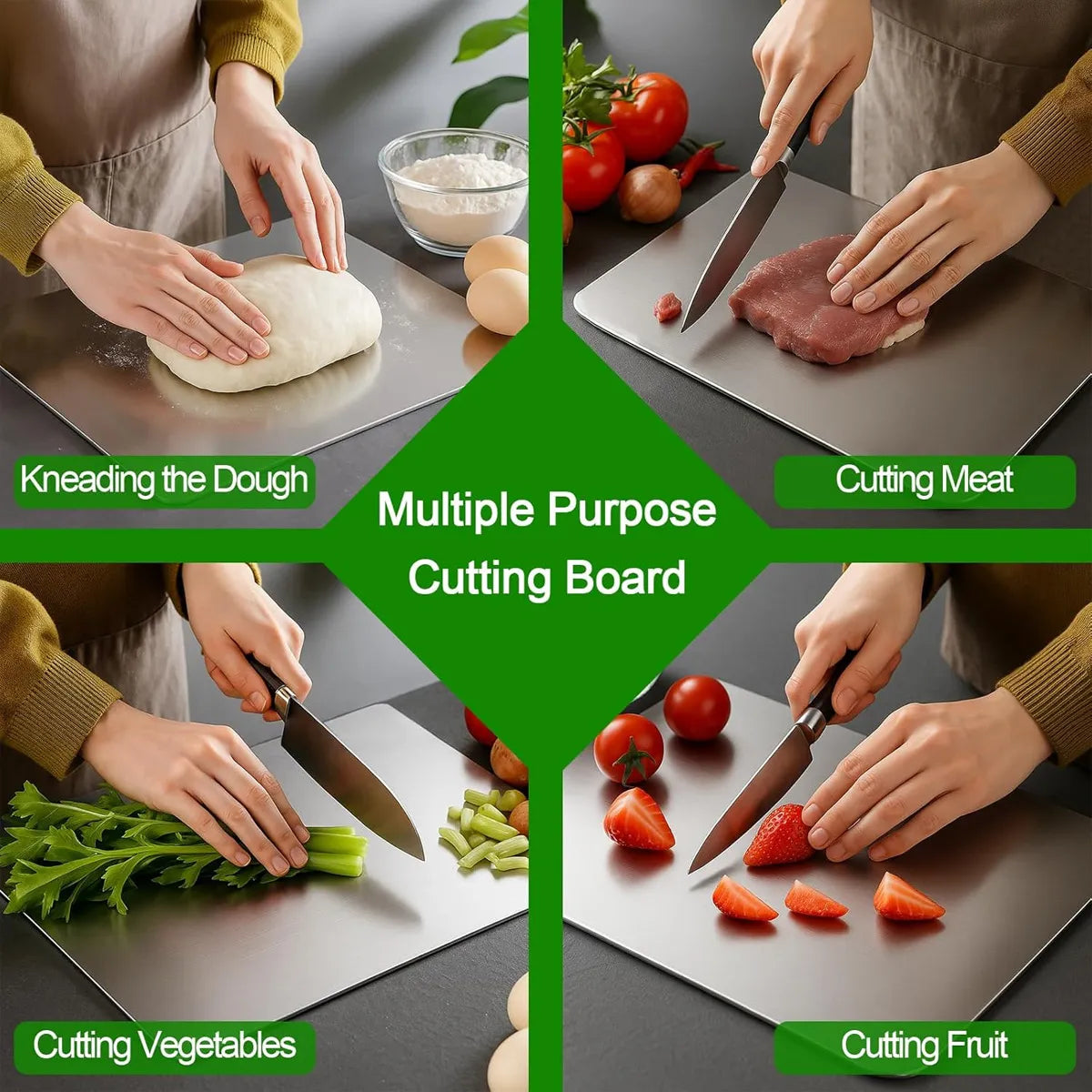 Traditional cutting boards absorb moisture, stains, and bacteria. This stainless steel cutting board gives you a clean, non-porous surface designed for safer everyday food prep.